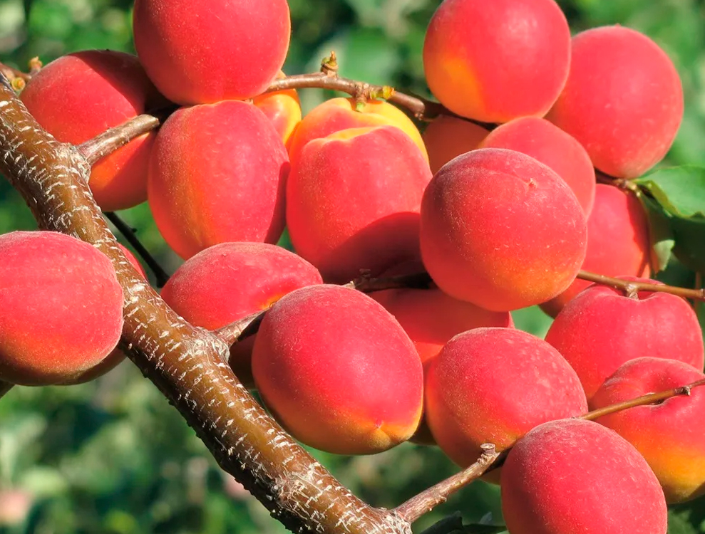 Абрикос Саратовский РубинКультура интенсивно растет, достигая 4-5 м, крона у нее шаровидная, раскидистая, не очень густая, кора коричневая, шероховатая. Ветки прямые, коричнево-бурые, голые. Листья некрупные, широкоокруглой формы, вогнутые, заостренные на кончиках, блестящие и гладкие, темно-зеленые, края листовой пластины городчатые. Цветки белые, одиночные. Побеги отличаются высокой скоростью роста. Срок жизни дерева – около 30 лет.