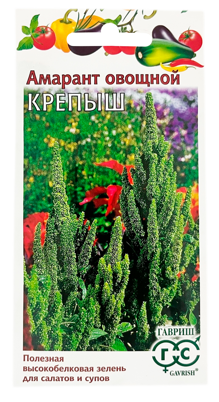 Амарант овощной КРЕПЫШ ГАВРИШРаннеспелый сорт (от всходов до потребительской спелости 70-80 дней) высотой 120-140 см, является источником растительного легкоусвояемого белка. По всему стеблю растения расположены густооблиственные побеги. Листья зеленые с красными прожилками, соцветие прямостоячее. Урожайность зелени до 3 кг/м2. Амарант требователен к теплу и свету, но непривередлив к почве: растет на любой, в том числе кислой, песчаной, солонцеватой. Легко приспосабливается к различным условиям выращивания. Выносит осенние холода. Сорт рекомендуется для использования в качестве салатной культуры, в кулинарии. Используется молодая, нежная, сочная зелень в салатах и кулинарии, для приготовления напитков. Цветущие растения высушивают и используют в чаях, в качестве натуральных красителей, пищевых добавок.