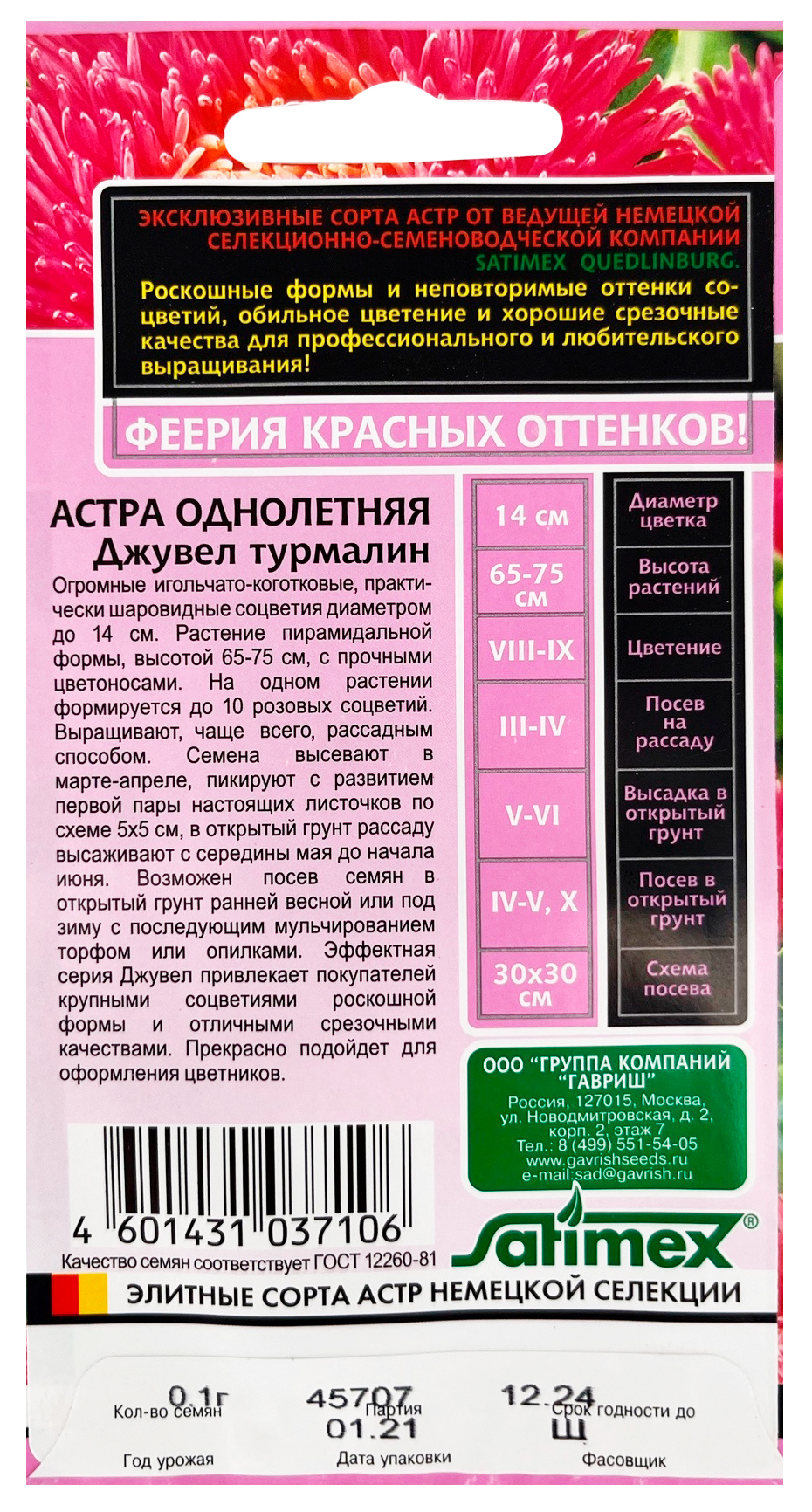 Астра Джувел Турмалин, однолетняя (игольчато-коготковая)* 0,05 г серия ЭксклюзивОгромные игольчато-коготковые, практически шаровидные соцветия до 14 см. Растение пирамидальной формы, высотой 65-75 см с прочными цветоносами. На одном растении формируется до 10 розовых соцветий. Выращивают чаще всего рассадным способом. Семена высевают в марте-апреле, пикируют с развитием первой пары настоящих листочков по схеме 5х5 см, в открытый грунт рассаду высаживают с середины мая до начала июня. Возможен посев семян в открытый грунт ранней весной или под зиму с последующим мульчированием торфом или опилками. Эффектная серия Джувел привлекает покупателей крупными соцветиями роскошной формы и отличными срезочными качествами. Прекрасно подойдет для оформления цветников.