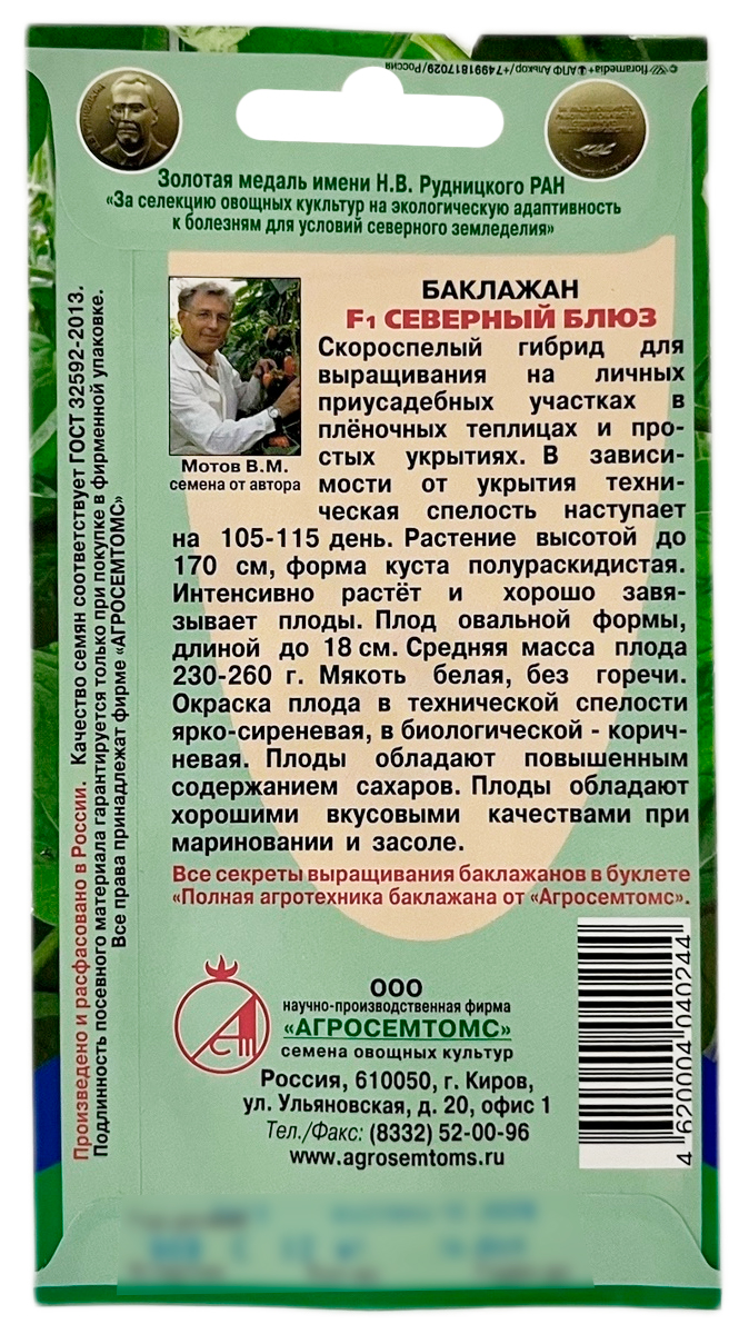 Баклажан СЕВЕРНЫЙ БЛЮХ АГРОСЕМТОМСБаклажан Северный блюз – аристократ среди баклажанов. Породистый и красивый. Если бы он не был так вкусен, то им вполне можно было бы любоваться, составляя из великолепных плодов красочные букеты. Но икра (заморская, баклажанная) – всё-таки вкуснее.