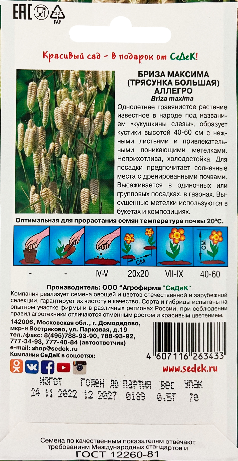 Бриза Аллегро максима (трясунка большая) 0,5г семена