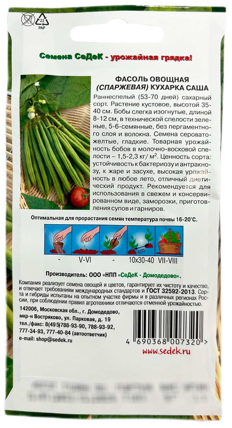 Фасоль Кухарка Саша (овощная) (Евро, 5) семена