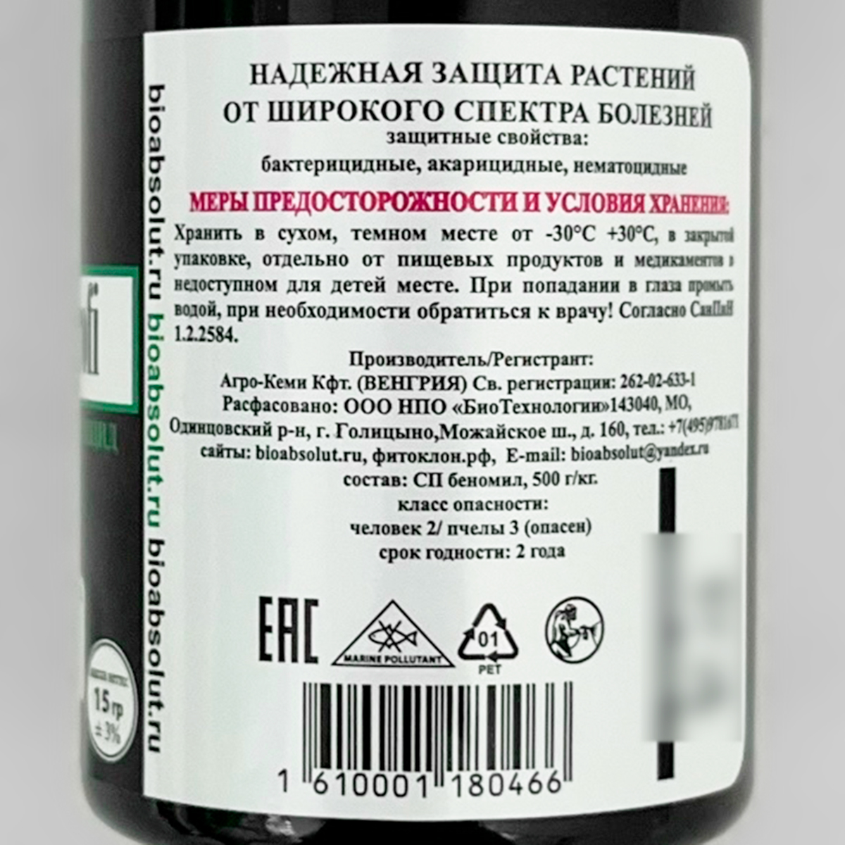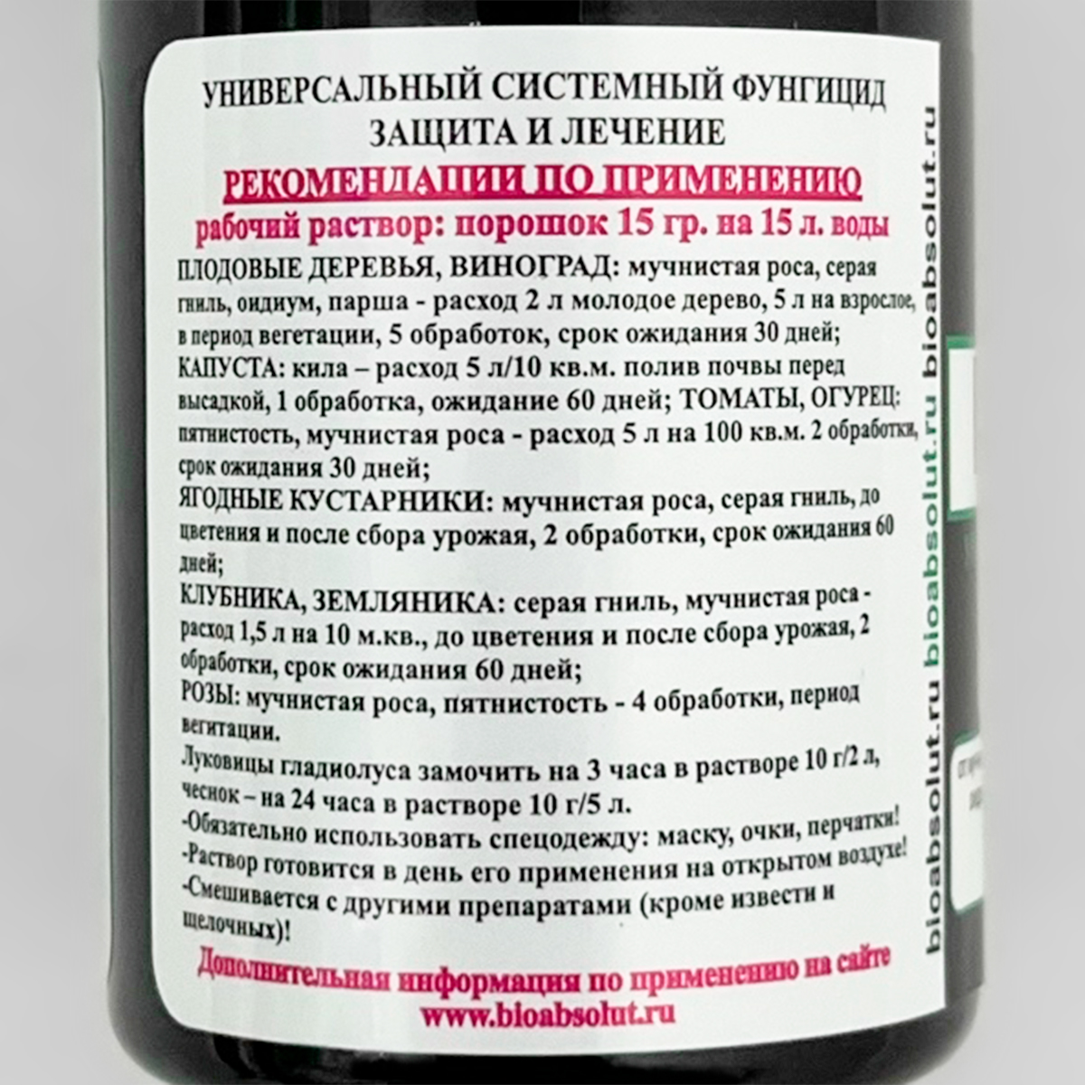 ВЫСОКОЭФФЕКТИВНЫЙ ФУНГИЦИД, системный и универсальный – защита и лечение бактерицидные, акарицидные, нематоцидные.