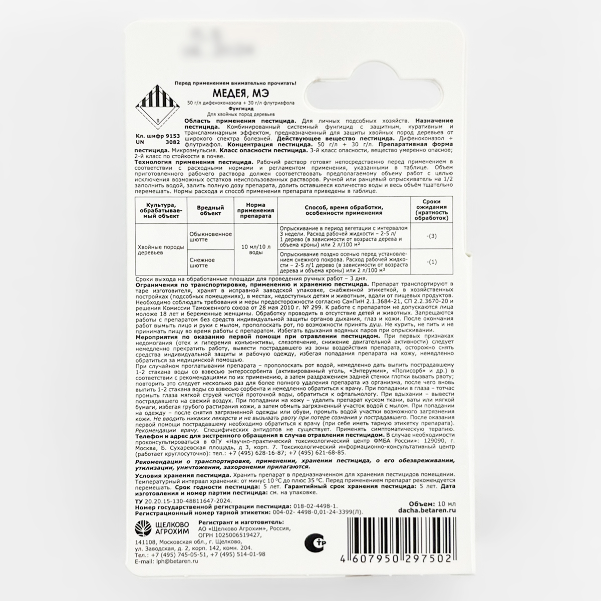 МЕДЕЯ, МЭ 10млДля хвойных пород деревьев. Для защиты от широкого спектра болезней. Профилактика и лечение болезней.