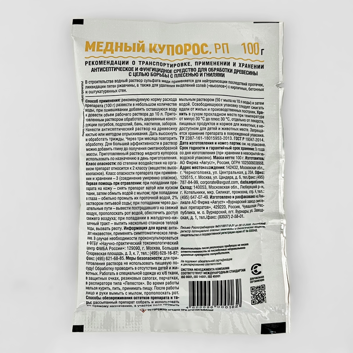 Медный купорос, РП 100г АвгустОт плесени и гнили. Антисептическое и фунгицидное средство для обработки древесины.