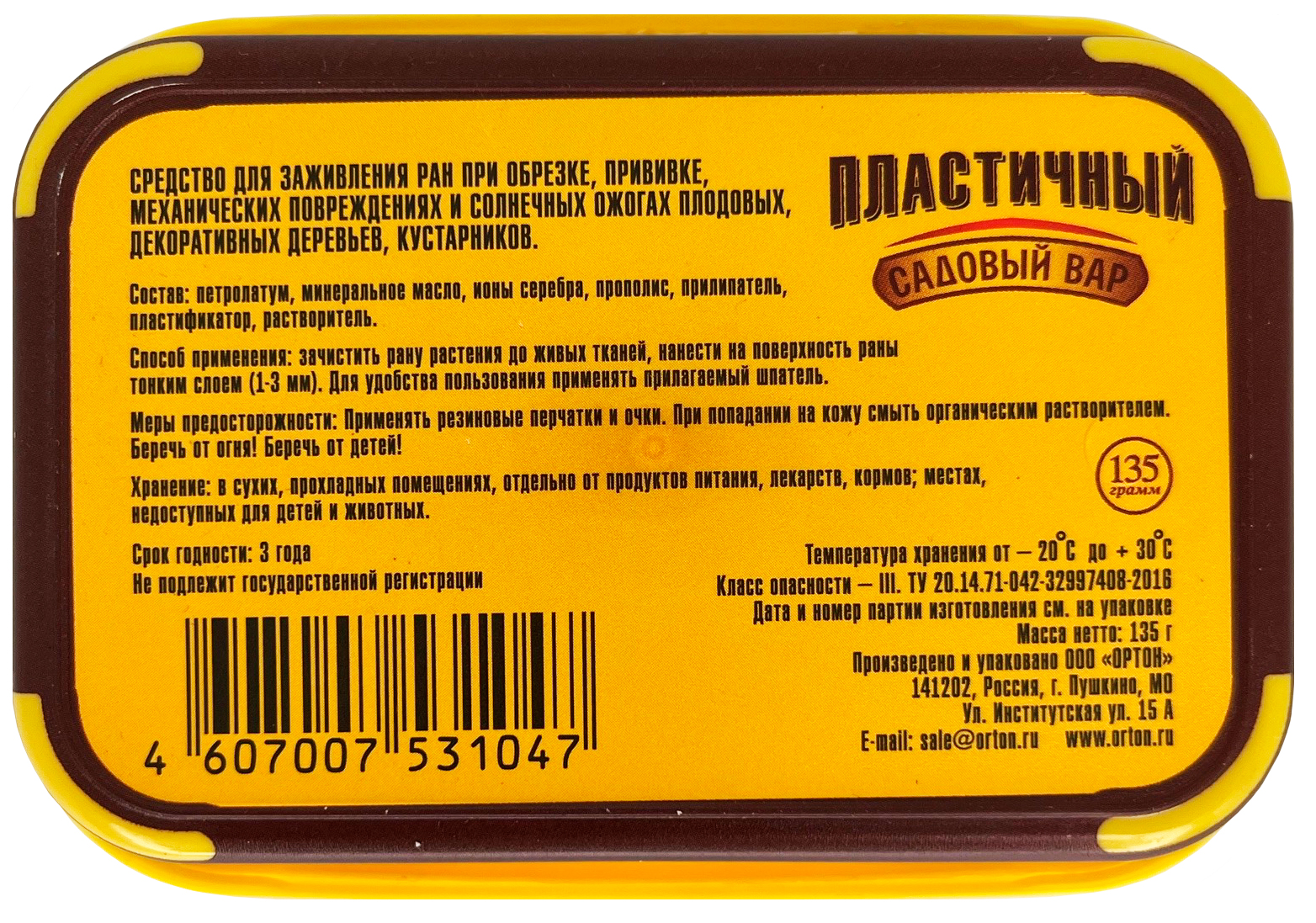 Вар садовый 135г. пластичный в контейнере Ортон
