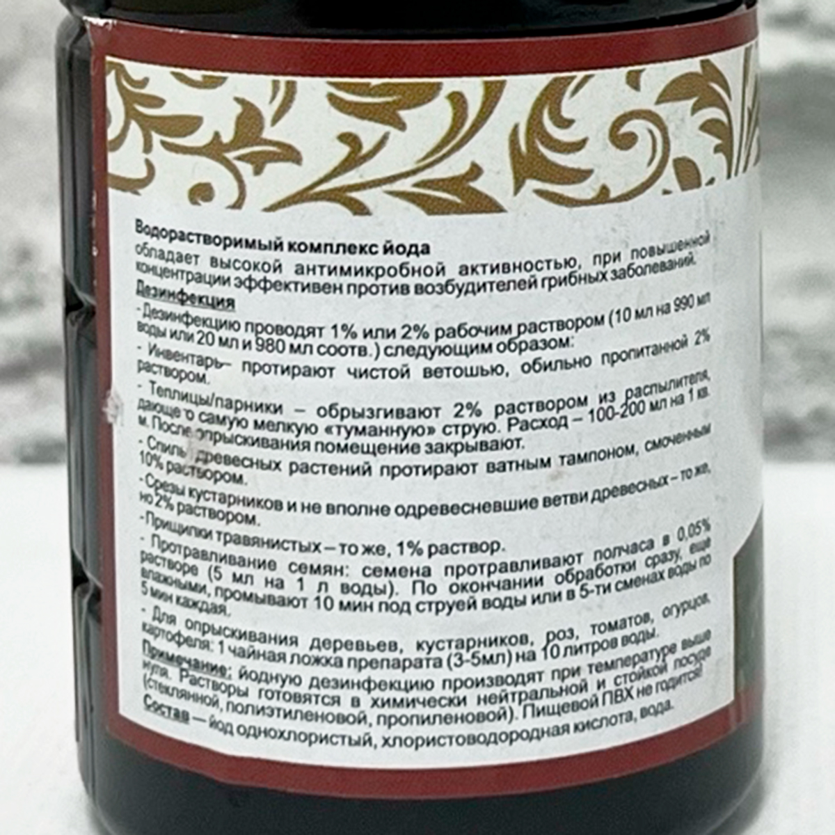 ЙОД садовыйВодорастворимый комплекс йода. Обладает высокой антимикробной активностью при повышенной концентрации эффективен против возбудителей грибных заболеваний.