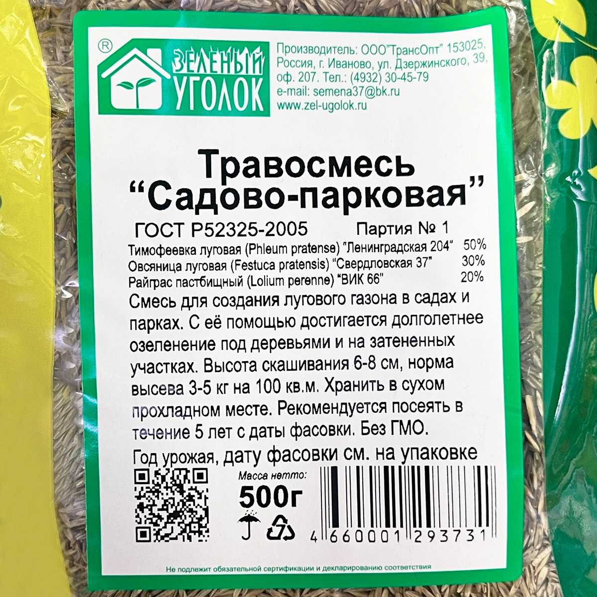 Газон Травосмесь Садово-парковая 0,5кг семена