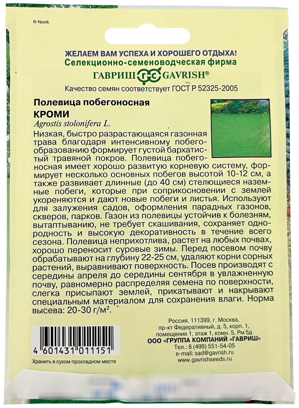Полевица побегоносная КромиНизкая, быстро разрастающаяся газонная трава, благодаря интенсивному побегообразованию быстро формирует густой травяной покров. Образует насыщено-зеленые плотные ковры из побегов и прикорневых листьев. Полевица побегоносная неприхотлива, с хорошо развитой корневой системой, формирует несколько основных побегов, высотой 10-12 см, а также развивает длинные (до 40 см) стелющиеся наземные побеги, которые при соприкосновении с землей укореняются и дают новые побеги и листья. Таким образом, получается очень плотный, изумрудный ковер. Используется для залужения садов, оформления парадных газонов, скверов, парков. Сохраняет однородность и высокую декоративность в течение всего сезона. Полевица побегоносная хорошо переносит суровые зимы, идеальна для создания газона, как в черте города, так и за его пределами. К почвам неприхотлива. Не требует специального ухода – скашивания. Устойчива к вытаптыванию. Агротехника: Для получения наилучших результатов необходимо подготовить участок перед посевом.