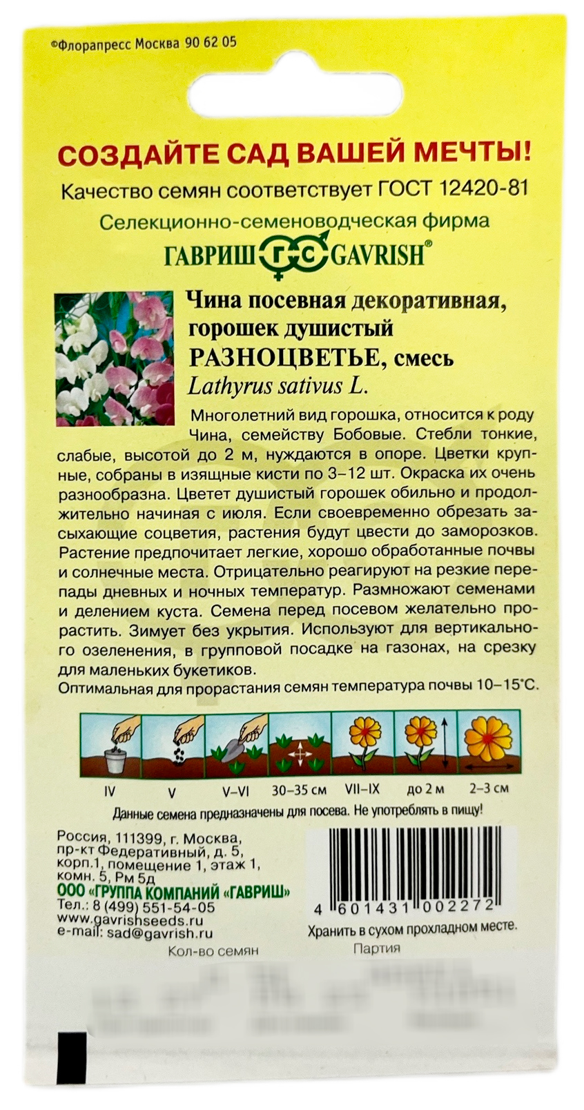 Горошек многолетний Разноцветье смесь 0,5г семена