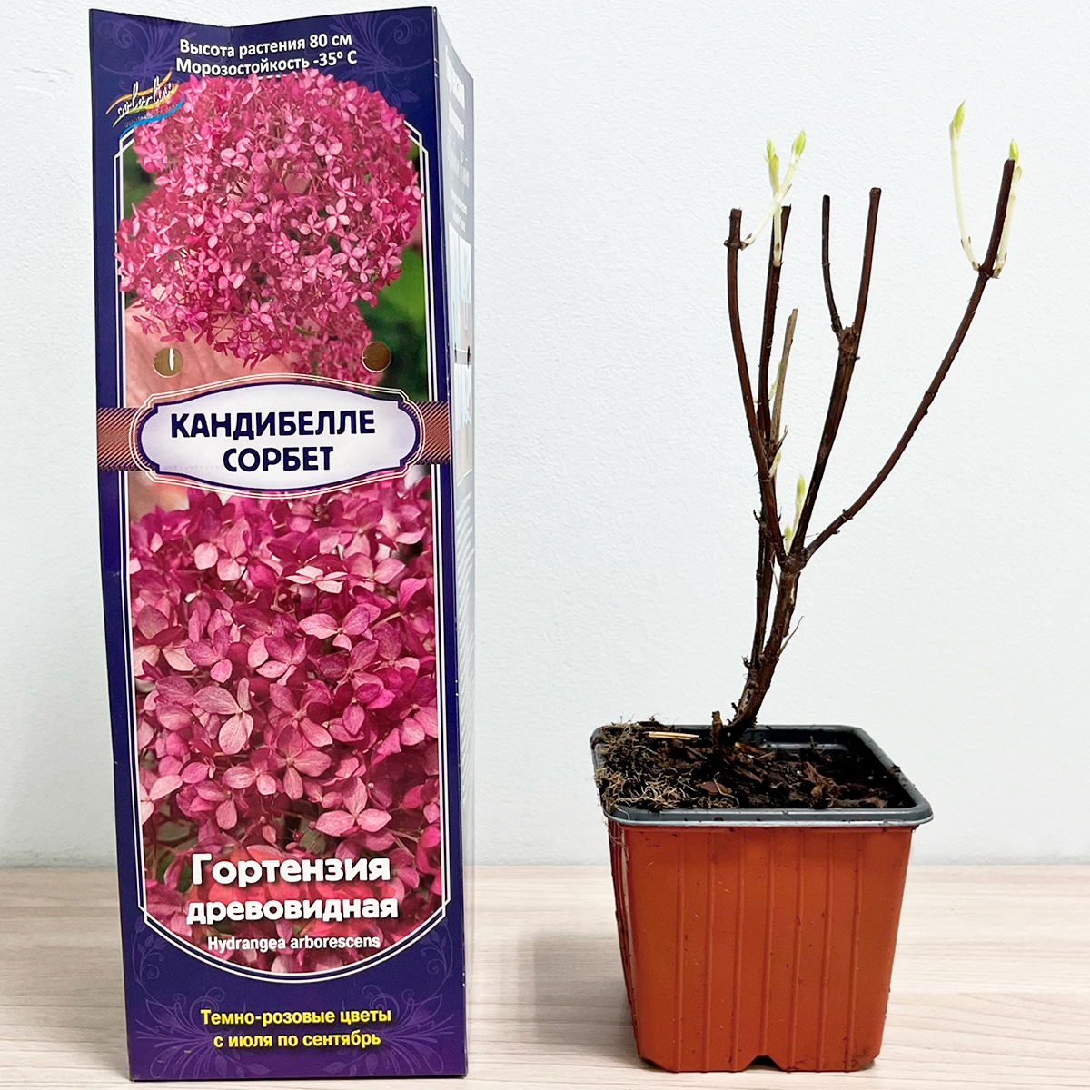 Гортензия древовидная КАНДИБЕЛЛЕ СОРБЕТЗимостойкая. Крепкие ветви, большие листья. Высота растения до 80 см. Цветёт тёмно-розовыми цветами с июля по сентябрь.