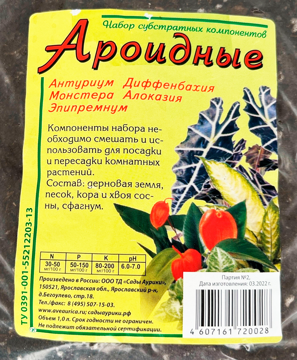 Субстрат Сады Аурики Ароидные 1 л применяется для выращивания цветочных растений семейства ароидные.Почвосмесь обладает дренажными свойствами, улучшает структуру грунта, его воздухопроницаемость и способствует удержанию полезных веществ в грунте.
