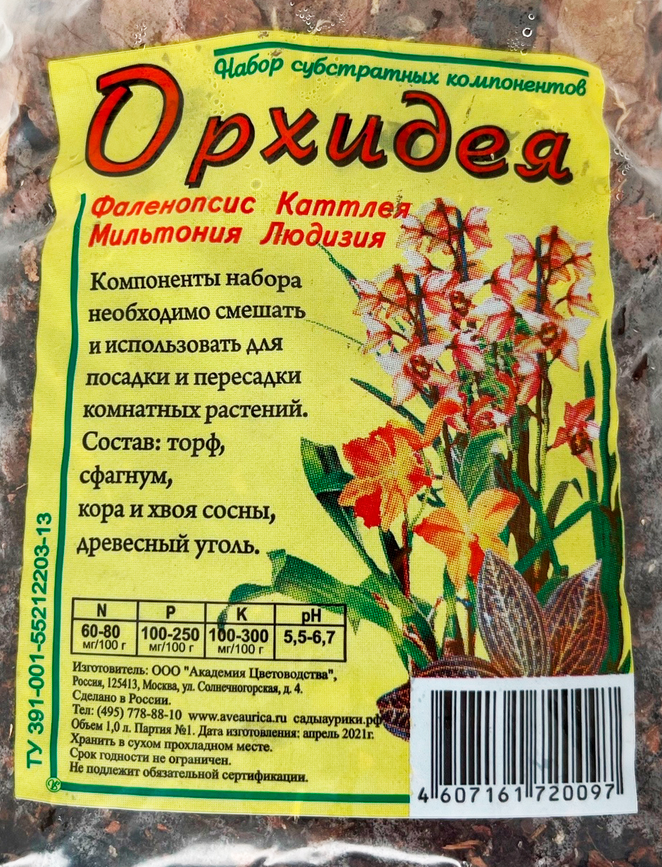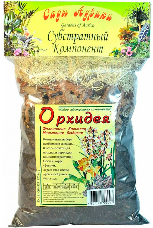 Субстрат состоит из натуральных компонентов - коры сосны, древесного угля, сфагнума, торфа и биогумуса.