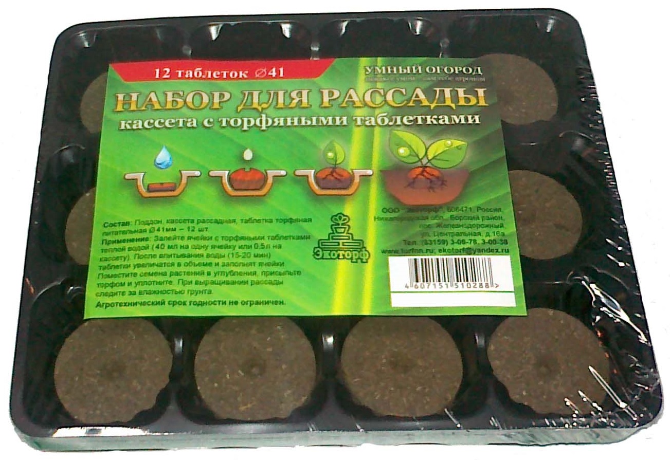 Комплект для рассады с торф.таблетками 41мм*12шт (кассета+лоток)