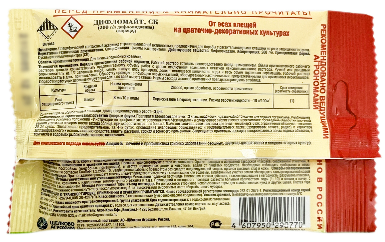 Стопклещ Дифломайт 5мл для цветочно-декоративныхПрепарат дифломайт, СК (стопклещ) – 200 г/л дифловидазина в препаративной форме суспензионного концентрата. Это мощный контактный акарицид из нового химического класса для борьбы с клещами на яблоне, винограде, цветочно-декоративных культурах и культурах защищённого грунта.