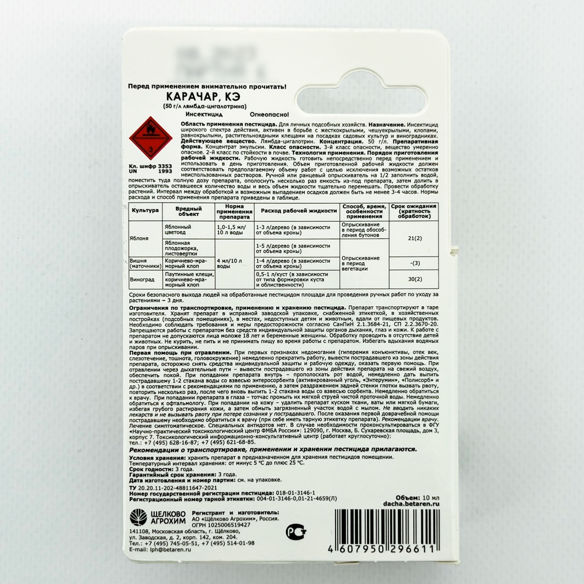 Карачар, КЭ 10млСостав: 50 г/л лямбда-цигалотрина.
