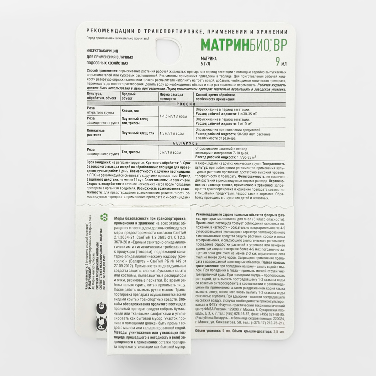 МАТРИНБИО, ВР 9млОт клещеё и других вредителей. Натуральный препарат для комнатных растений. Декоративных и цветочных культур.