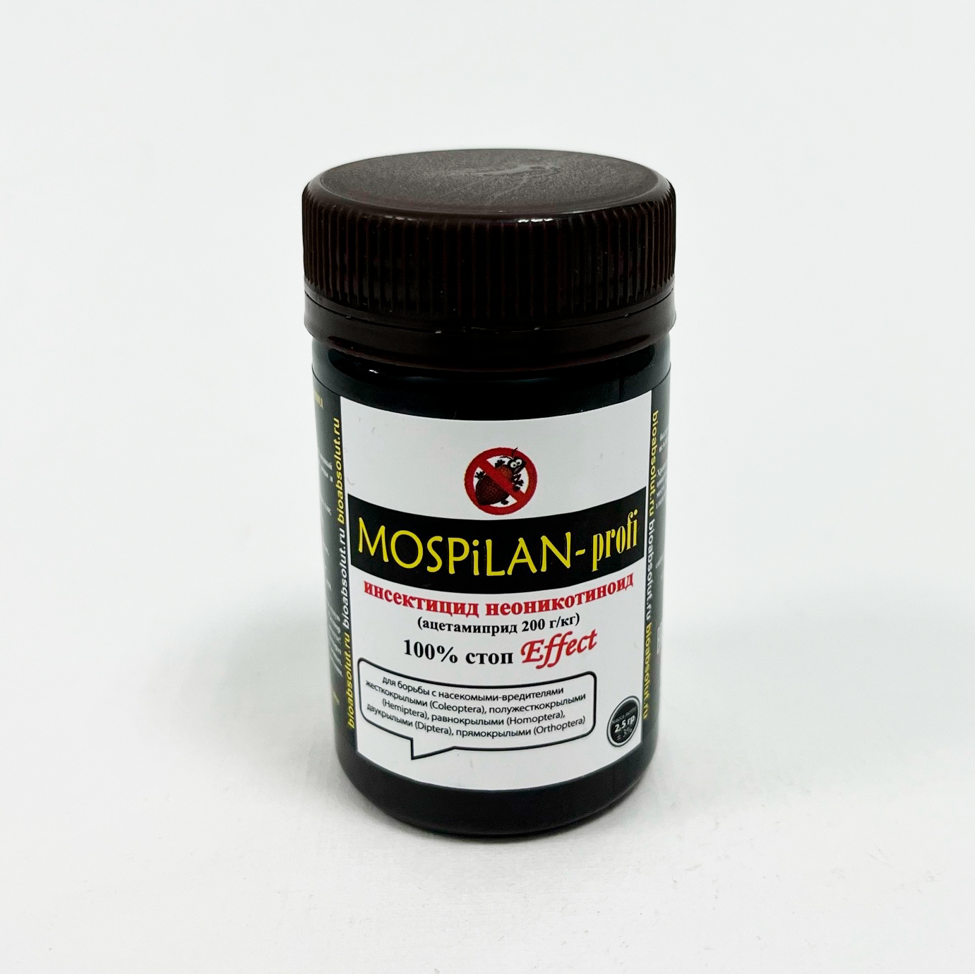 MOSPiLAN -profi МОСПИЛАН 2,5 гр. системный инсектицид от насекомых-вредителей.Надежная защита Ваших растений от насекомых-вредителей представителей отрядов равнокрылых, жесткокрылых и полужесткокрылых и чешуекрылых.