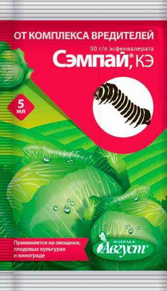 Сэмпай – лучшее решение проблем с гусеницами. При его использовании гибель вредных насекомых наблюдается уже в течение 0,5-2 ч. При этом гусеницы погибают как при соприкосновении с раствором, так и при поедании листьев обработанных растений. Кроме того, Сэмпай обладает хорошим отпугивающим эффектом, который выражается в нарушении питания личинок и откладки яиц у взрослых насекомых.Благодаря улучшенной препаративной форме, содержащей прилипатель, Сэмпай надежно удерживается на листьях обработанных растений, при этом период его защитного действия составляет не менее 2-х недель. Кроме яблонь Сэмпай пригодится на капусте в борьбе с гусеницами белянок, совок и моли.