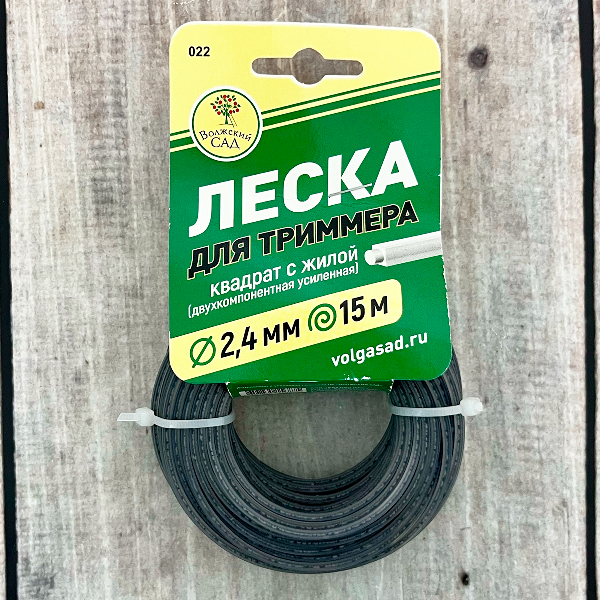 Леска для триммера Квадрат двухкомпонентный с жилой 2,4мм*15м Волжский сад