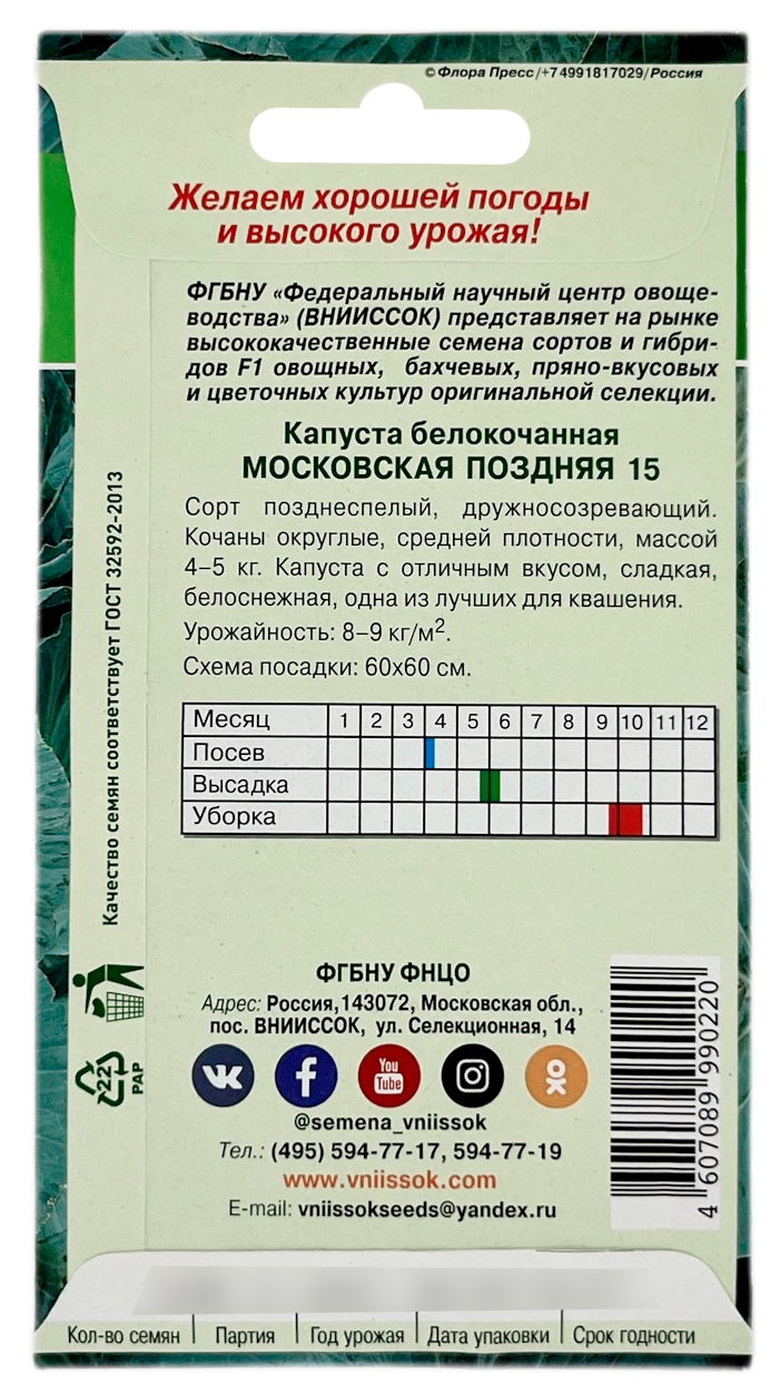 Капуста белокочанная Московская поздняя 15 0,5г