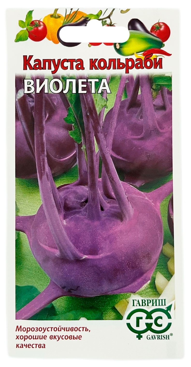 Капуста кольраби ВИОЛЕТА ГАВРИШПозднеспелый (100-110 дней от посева до уборки) сорт. Розетка полувертикальная, средняя, диаметром 50-70 см. Листовая пластинка средняя, овальная, плоская, сине-зеленая. Форма кончика листа - тупая. Стеблеплод среднего размера, диаметром 6-9 см, округло-плоский, темно-фиолетового цвета, с плоской вершиной. Мякоть белая, сочная, нежная. Масса 1,5-2,0 кг. Вкусовые качества хорошие. Посев на рассаду - в конце марта - начале апреля. Пикировка в фазе семядолей. Высадка в грунт в мае по схеме 20х50 см. Лежкость во время зимнего хранения средняя. Рекомендуется для использования в свежем виде и переработки. Товарная урожайность 2,2-2,6 кг/м2.