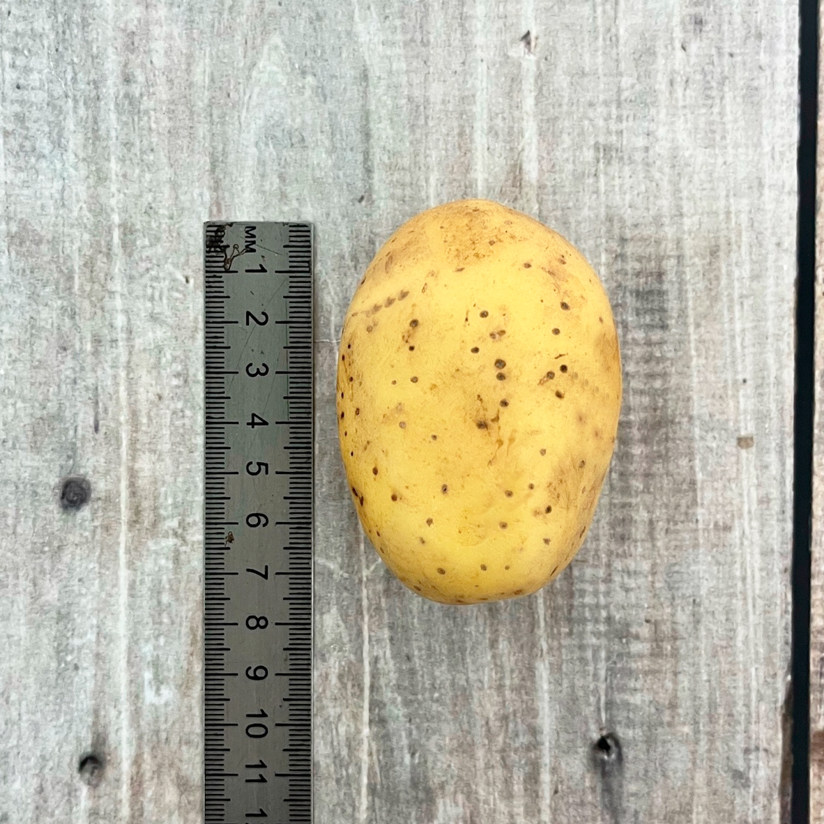 Клубни имеют желтую окраску кожуры и мякоти. Глазки на клубнях мелкие, а их глубина поверхностная. Картофель предназначен для использования в пищевых целях. Обладает отличными вкусовыми качествами.