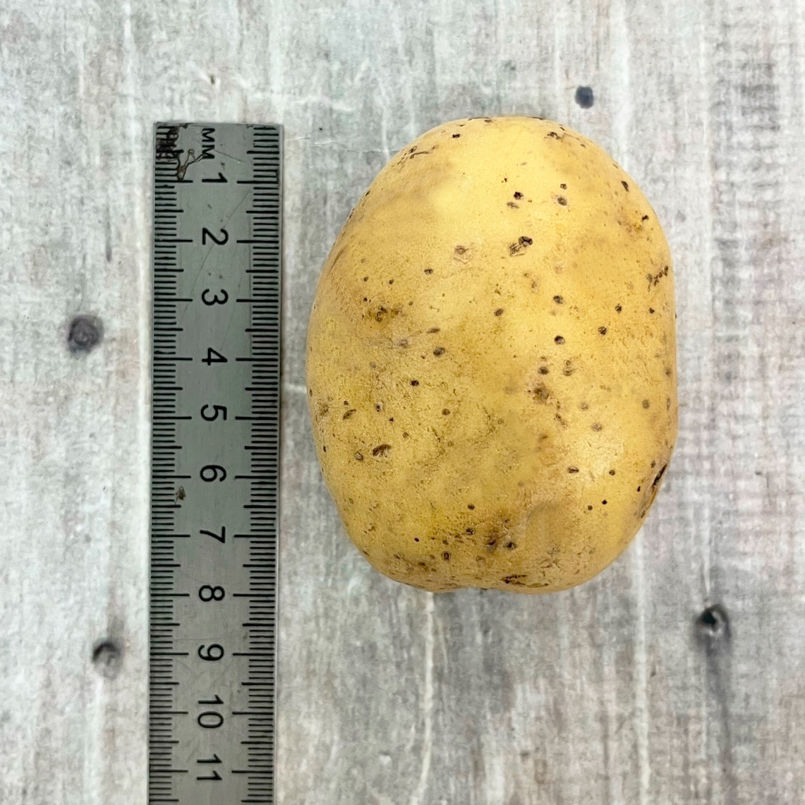Урожайность на 45-й день после полных всходов. Клубень овальный с мелкими до средней глубины глазками. Кожура и мякоть жёлтая. Масса товарного клубня 106-139 г. Содержание крахмала - 15,6%. Вкус хороший и отличный. Товарность - 81-90%. Лёжкость - 95%.