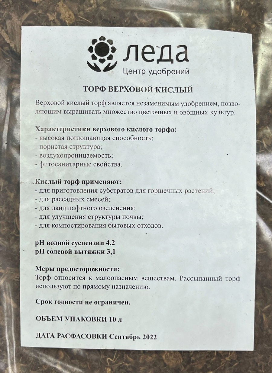 Торф верховой кислый 10л ЛедаВерховой кислый торф является незаменимым удобрением, позволяющим выращивать множество цветочных и овощных культур.