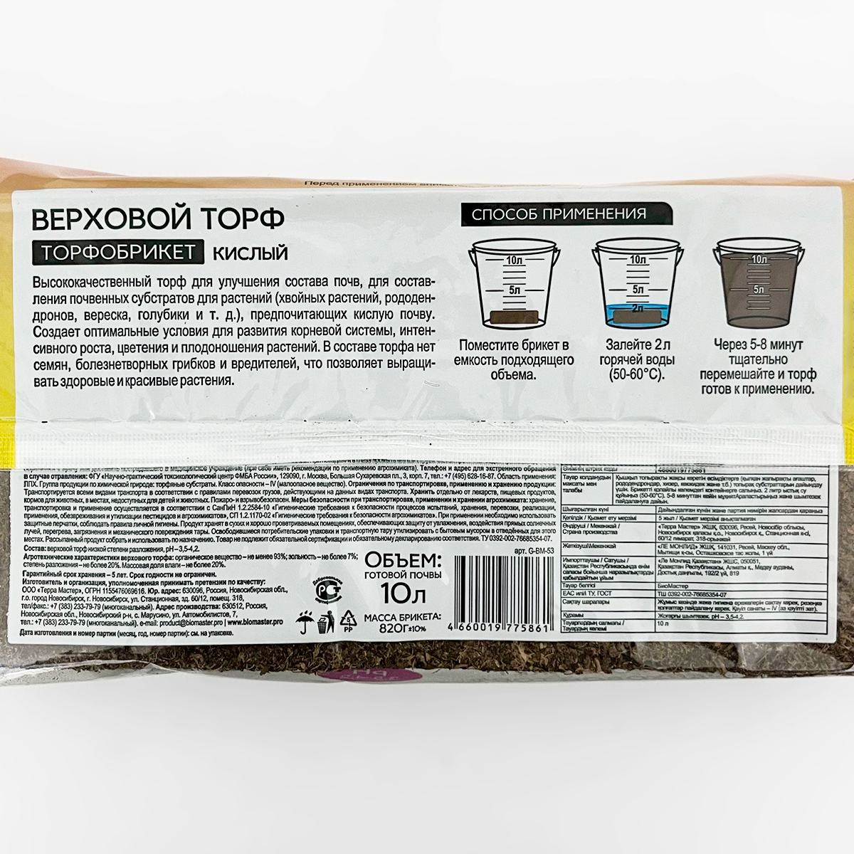 Торфобрикет Биомастер 10л верховой кислый