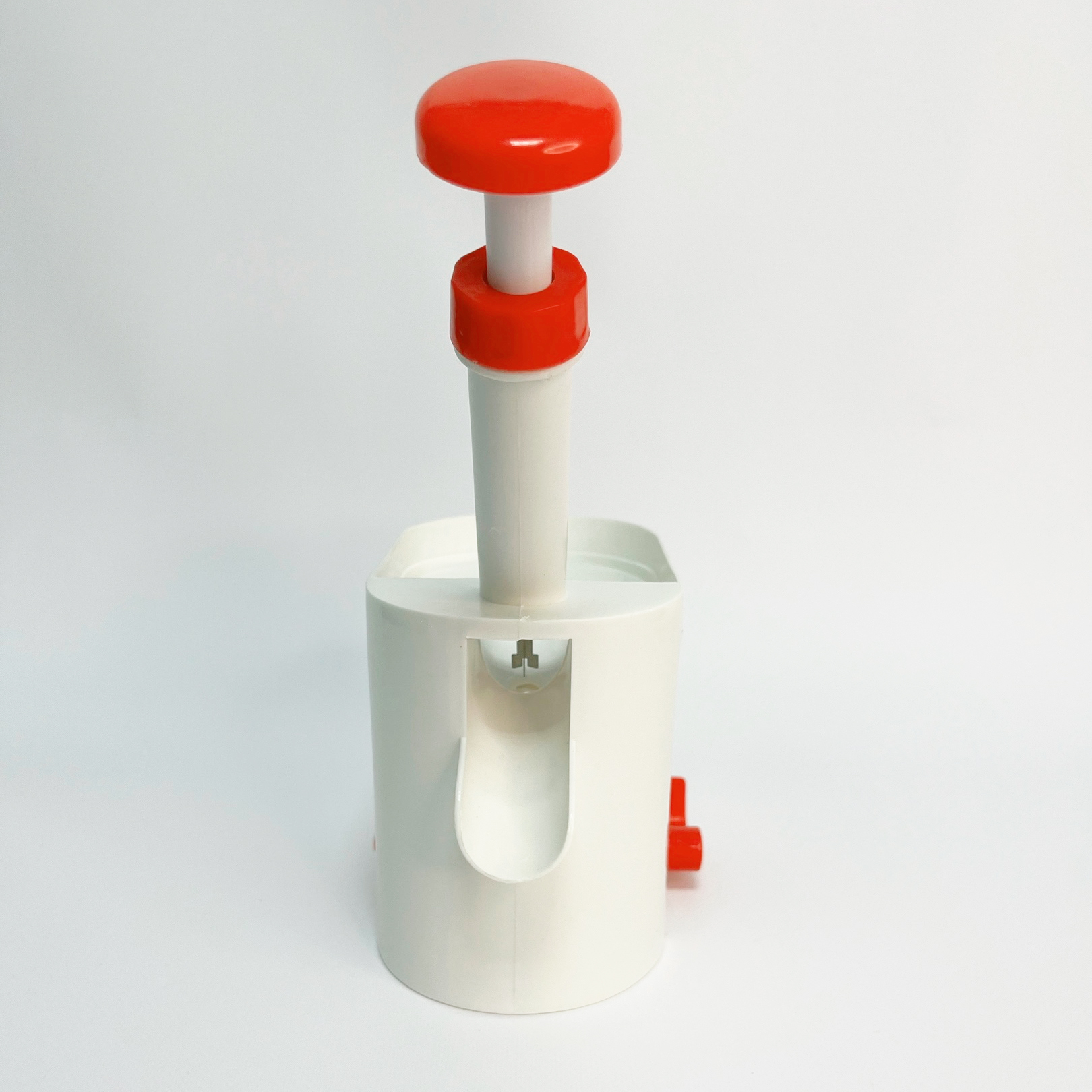 Положите вишни в контейнер и уложите их по одной в поршень. Нажмите на поршень и дождитесь, пока он плавно вернется на свое место.