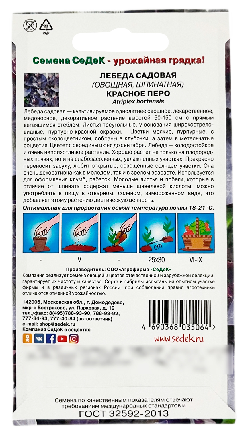 Лебеда Красное перо (шпинатная) (Евро, 0,2; 12817) семена