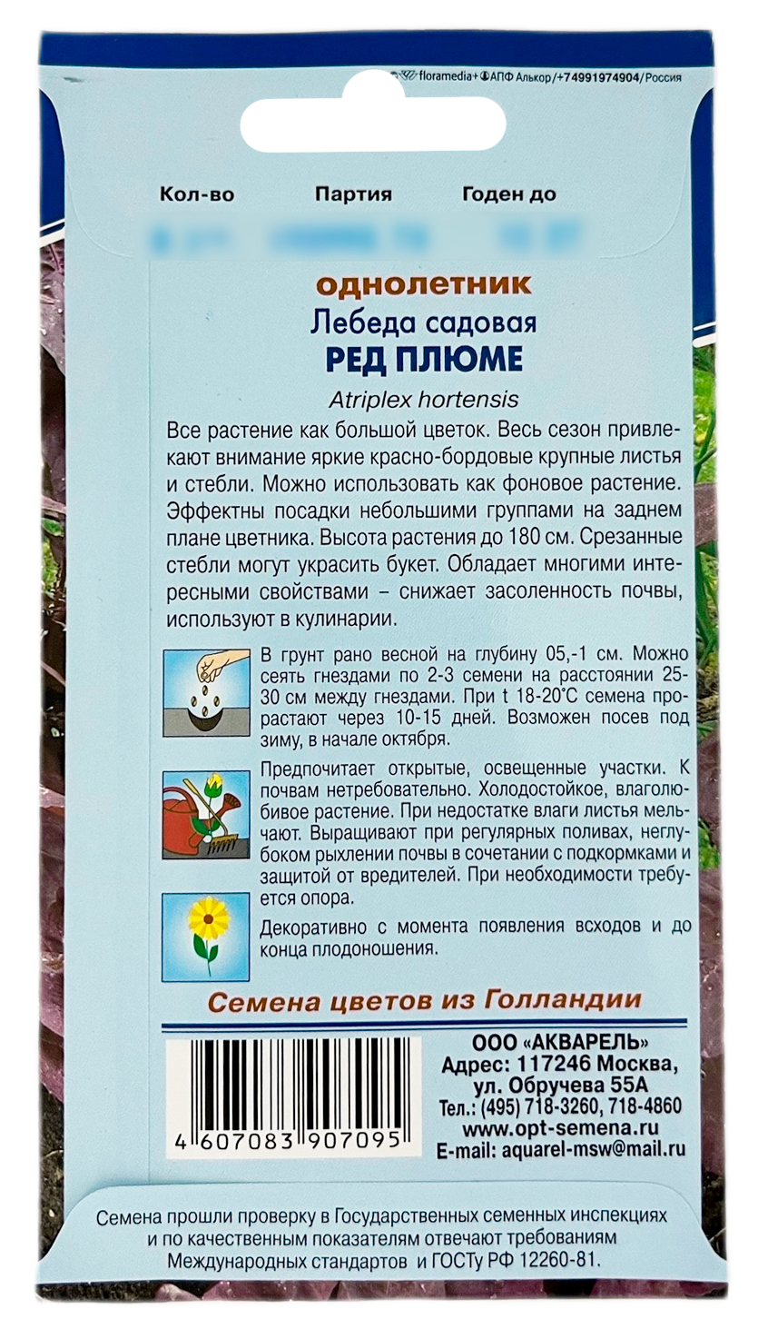 Лебеда садовая РЕД ПЛЮМЕ АКВАРЕЛЬВсе растение как большой цветок. Весь сезон привлекают внимание яркие красно-бордовые крупные листья и стебли. Можно использовать как фоновое растение. Эффектны посадки небольшими группами на заднем плане цветника. Высота растения до 180 см. Срезанные стебли могут украсить букет. Обладает многими интересными свойствами – снижает засоленность почвы, используют в кулинарии.