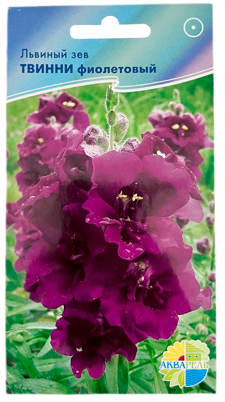 Львиный зев ТВИННИ ФИОЛЕТОВЫЙ АКВАРЕЛЬОдин из самых популярных и незаменимых летников, обильно цветущий все лето, способный украсить даже парадные цветники. Новый низкорослый гибрид с компактной формой и хорошей ветвистостью стебля, высотой до 25 см. Соцветия плотные, без запаха, цветки полумахровые, фиолетовые. Как низкорослое растение незаменимо при украшении балконов, садовых вазонов, используют для оформления бордюров, переднего плана цветников. Сочетается с низкорослыми астрами, петунией, бархатцами, цинерарией, сальвией.