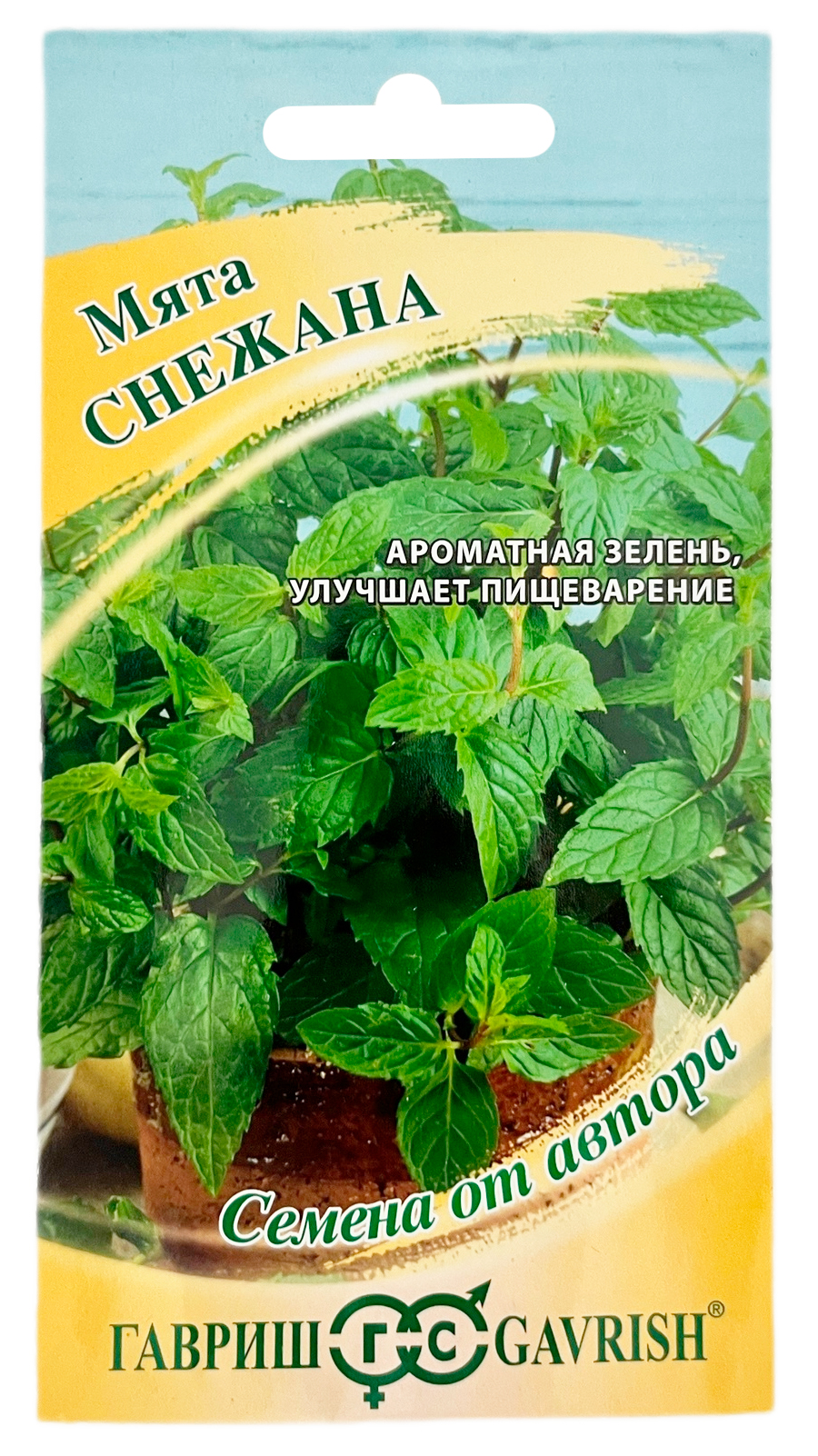 Мята СНЕЖАНА ГАВРИШМноголетнее холодостойкое травянистое растение. Сорт среднеспелый, 95-110 дней после полных всходов. Розетка листьев полуприподнятая. Листья светло-зеленые, слабоморщинистые, крупные, длиной 2,5 см, удлиненно-яйцевидной формы. Розовые цветки собраны в вытянутые соцветия. Молодые побеги и листья используют в качестве пряности в свежем и сушеном виде; в народной медицине — как успокаивающее средство, для улучшения пищеварения. Выращивают рассадным способом. Семена высевают поверхностно, не заделывая, опрыскивают и ставят на свет. Для ускорения прорастания семян, перед посевом рекомендуется в течение месяца держать их сухими в холодильнике. В мае-июне рассаду с 3-5 настоящими листьями высаживают в открытый грунт. На второй и последующие годы жизни зелень можно использовать с весны до самых заморозков.