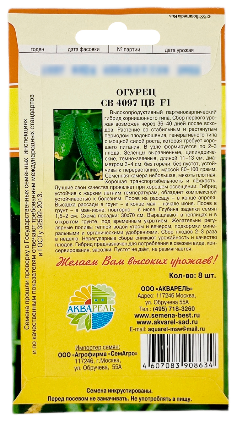 Огурец СВ 4097 ЦВ F1 8шт Акварель семена