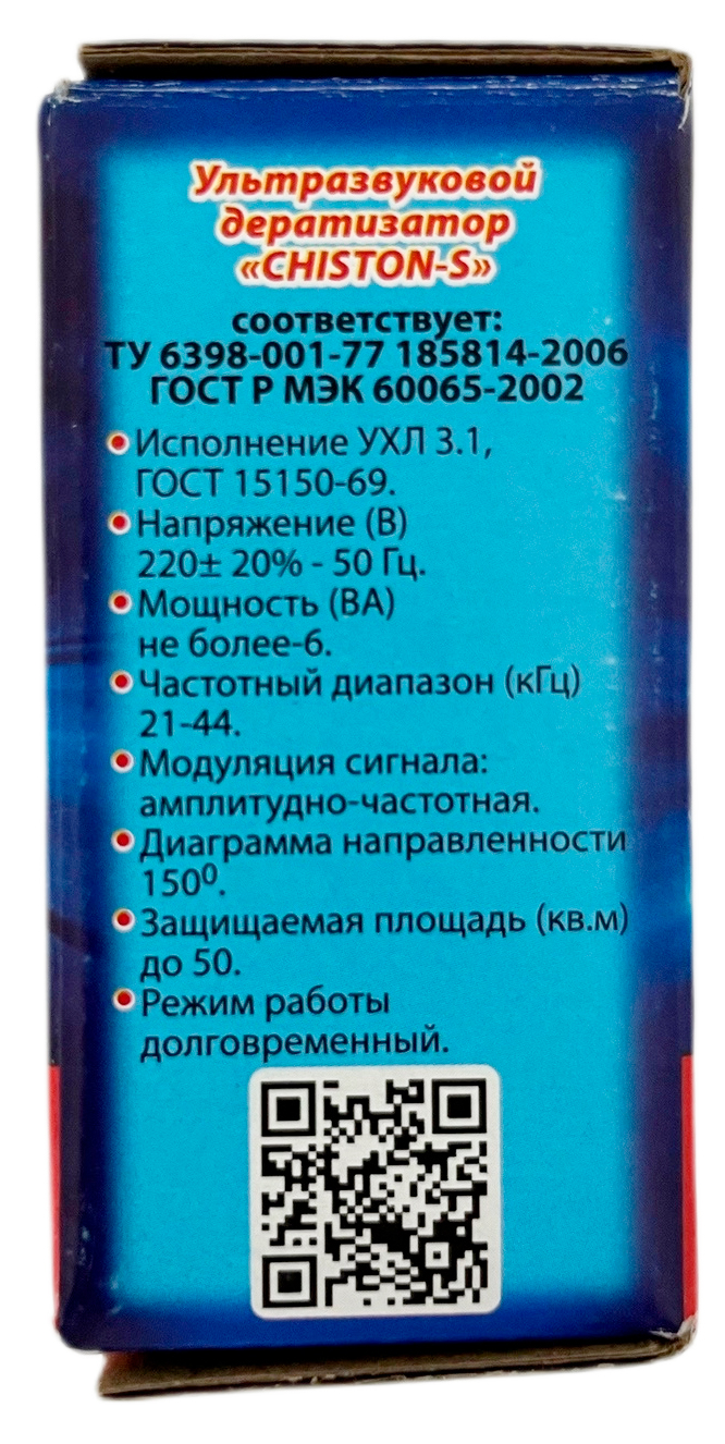 Ультразвуковой отпугиватель грызунов CHISTON-S"Чистон-S" прибор предназначен для стационарной защиты бытовых, производственных и технических помещений от грызунов (крыс, мышей).