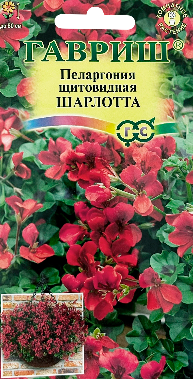 Пеларгония щитовидная Шарлотта, ампельнаяПеларгония является излюбленным растением цветоводов за яркое и обильное цветение в течение всего сезона. Новая улучшенная серия Reach Out станет идеальным решением вертикального озеленения и для создания долгоцветущего ковра. Сорт Шарлотта с непрерывным образованием простых, звездчатых, насыщенно-малиновых цветков, собранных по 5-8 штук в изящные зонтиковидные соцветия на фоне сочной зелени органично впишется в любой уголок вашего сада. Огромные плотные кусты шаровидной формы с крепкими, сильноветвящимися побегами до 80 см длиной и прочными декоративными листьями с оригинальным темным рисунком устойчивы к ветру и дождям. Пеларгония светолюбива, неприхотлива, легко переносит недостаток влаги, предпочитает минеральные удобрения, обогащенные калием. Для получения цветущих растений к началу лета посевы производят с декабря по февраль, используя в качестве субстрата чистый торф или смесь торфа с песком. Для комнатного использования высевают в марте-апреле. Всходы обычно появляются через 1,5-2 недели после посева. В фазе двух-трех настоящих листьев растения пикируют в горшки. Для лучшего кущения рассаду прищипывают над пятым-шестым листом. Летом пеларгонию желательно выносить на свежий воздух, а зимой устанавливать в прохладной светлой комнате с температурой 10-12°C. Растением украшают подпорные стенки, сажают в подвесные корзины и настенные кашпо, вазоны, оконные и балконные ящики.