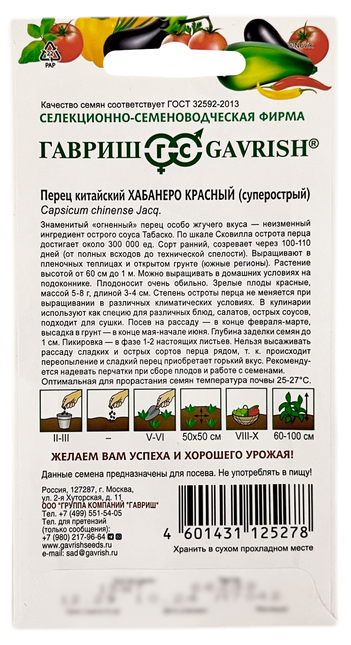 Перец китайский ХАБАНЕРО красный ГАВРИШ описание
