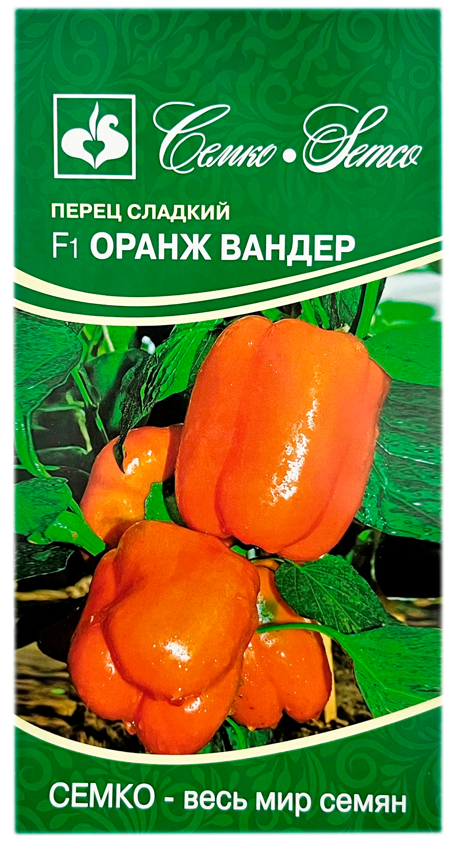 Перец сладкий F1 ОРАНЖ ВАНДЕР СЕМКОГибрид раннеспелый. От всходов до технической спелости плодов 100-110 дней. Растение высотой 90-110 см. Крупные плоды кубовидной формы, в технической спелости зеленого, в биологической -ярко-оранжевого цвета, массой 230-250 г. Толщина стенки плода до 10 мм. Устойчив к вирусу табачной мозаики. Предназначен для выращивания во всех типах теплиц. Семена прорастают за 15-20 дней при температуре 23-25°С. Оптимальный возраст рассады для высадки на постоянное место 50-60 дней.