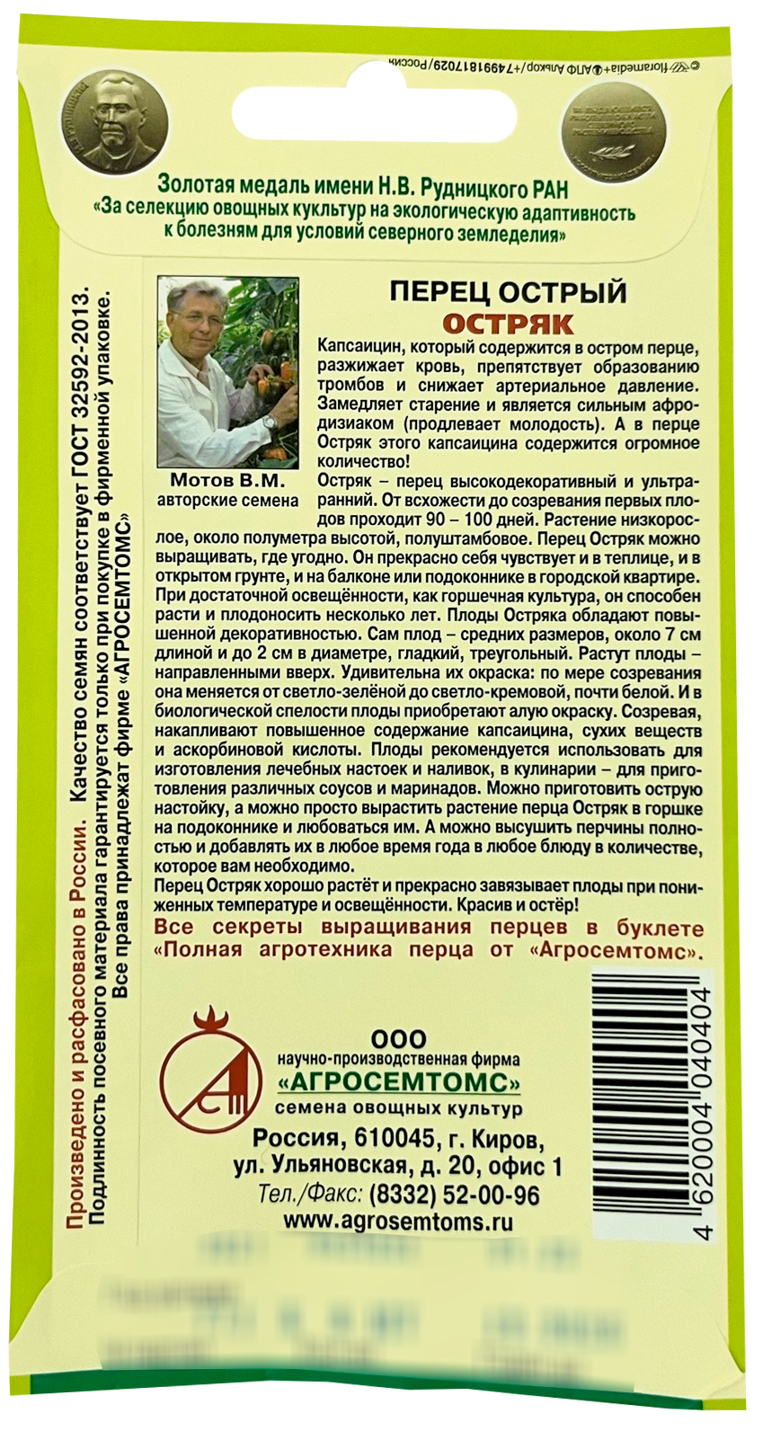 Перец острый ОстрякКапсаицин, который содержится в остром перце, разжижает кровь, препятствует образованию тромбов и снижает артериальное давление. Замедляет старение и является сильным афродизиаком (продлевает молодость). А в перце Остряк этого капсаицина содержится огромное количество!