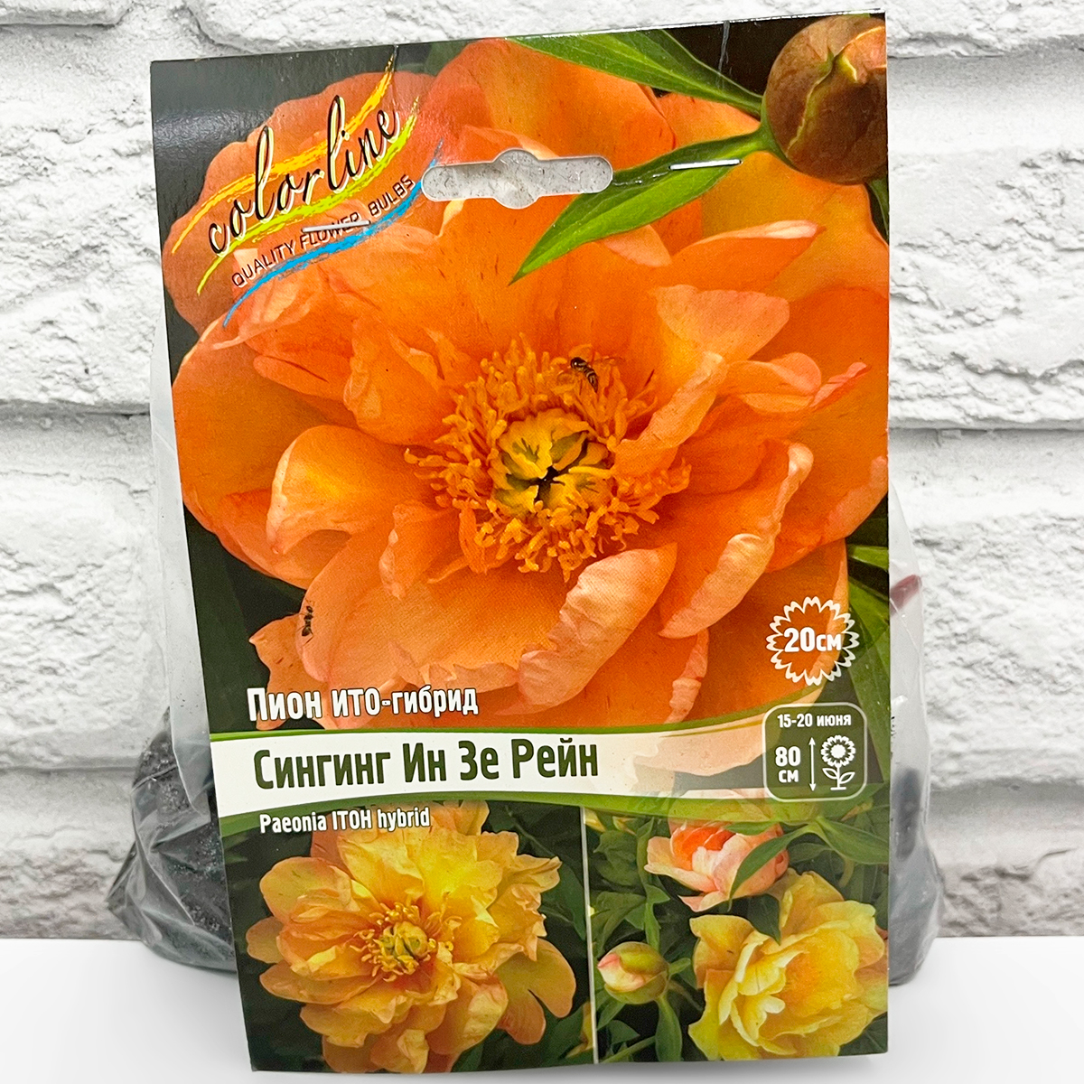 Пион ито-гибрид СИНГИНГ ИН ЗЕ РЕЙНВысота растения до 90 см. Сорт-хамелеон! Цветы махровые и полумахровые, в процессе цветения демонстрируют несколько расцветок. Розовые бутоны постепенно раскрываются в светло-лососево-розовые цветы, по мере созревания окраска становится оранжево-желтой. Редкие лепестки имеют темно-розовые прожилки. Мягкий, приятный аромат. Цветки устойчивы к дождю.