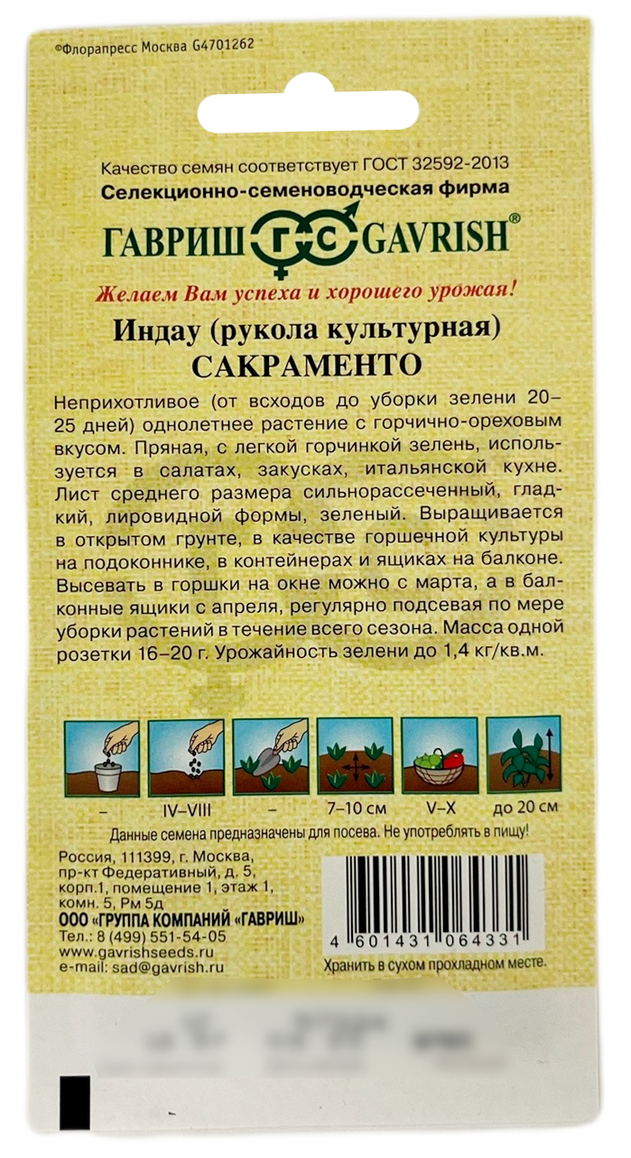 Индау Сакраменто (Рукола) 1,0г автор. семена