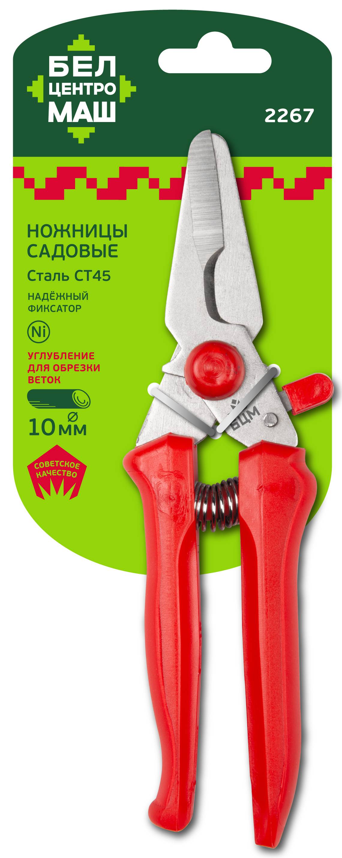Ножницы садовые 2267 ЦИСадовые ножницы Центроинструмент БЦМ 2267 используются для ухода за садовыми и домашними декоративными растениями, а также для срезания поспевших гроздьев винограда и других плодовых. Ножницы бережно относятся к нежным, тонким стеблям и листьям, не травмируют их и не оставляют заусенцев при использовании. Благодаря специальной выемке в режущей части, можно производить обрезку веток до 10 мм толщиной.