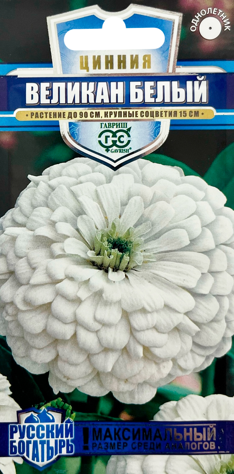 Цинния Великан белый 0,3г серия Русский богатырь семена