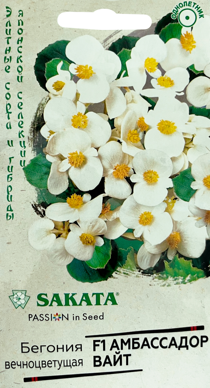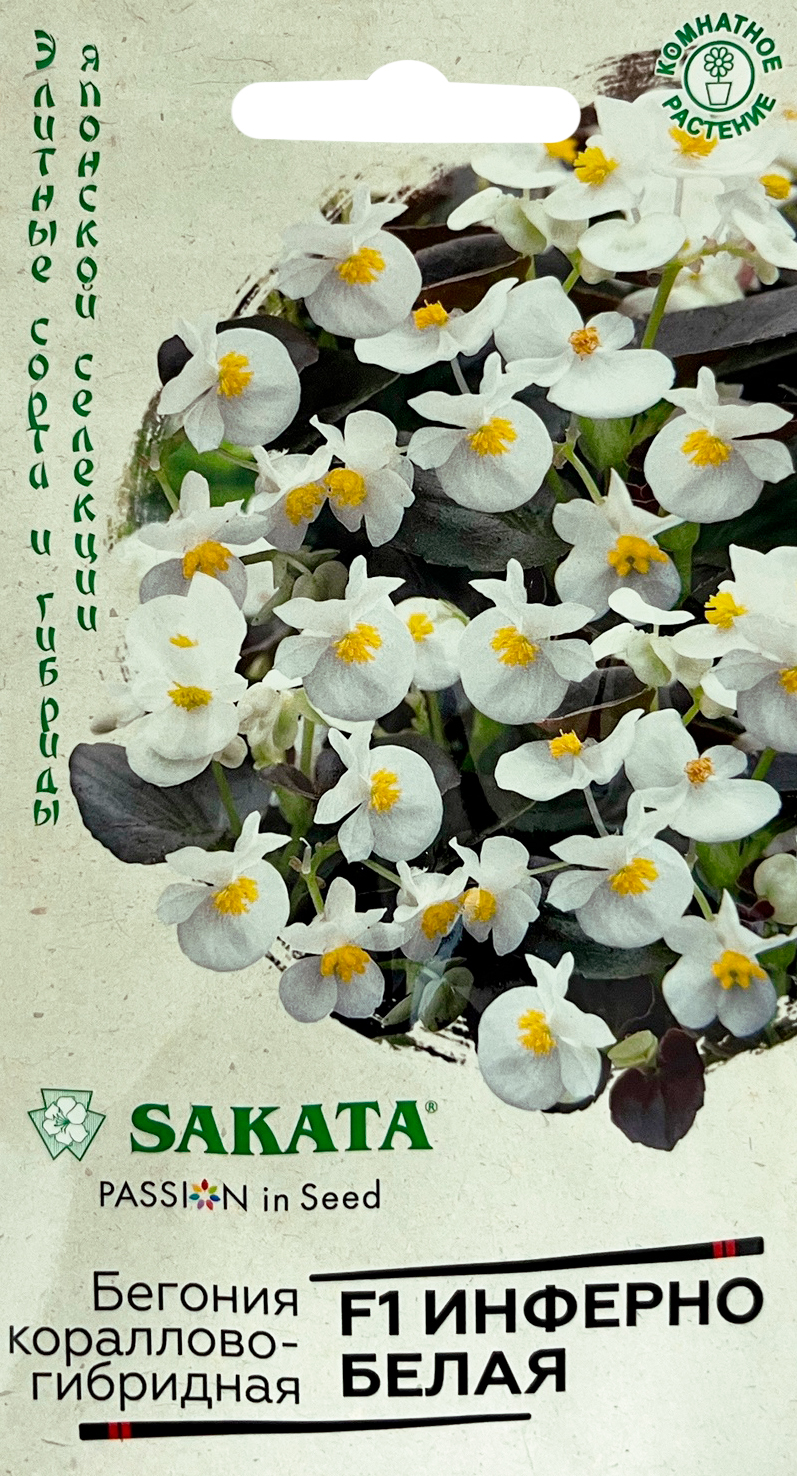 Бегония Инферно белая F1 гибридн. гранул. 4 шт. пробирка, Саката серия Элитная клумба Н21 семена