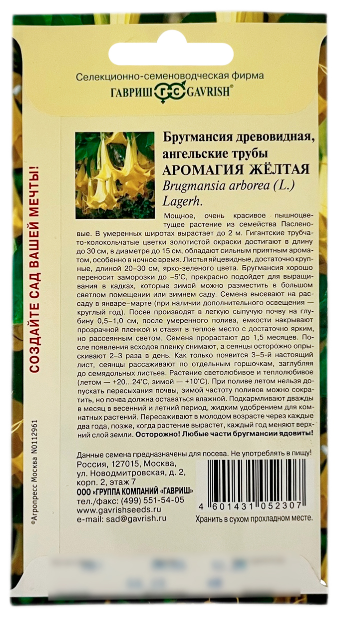 Бругмансия древовидная ангельские трубы АРОМАГИЯ ЖЁЛТАЯ ГАВРИШ описание