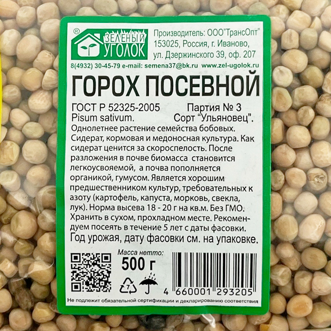 Горох посевной 500гГорох посевной — однолетнее растение семейства бобовые. Самый известный и распространённый из видов гороха.