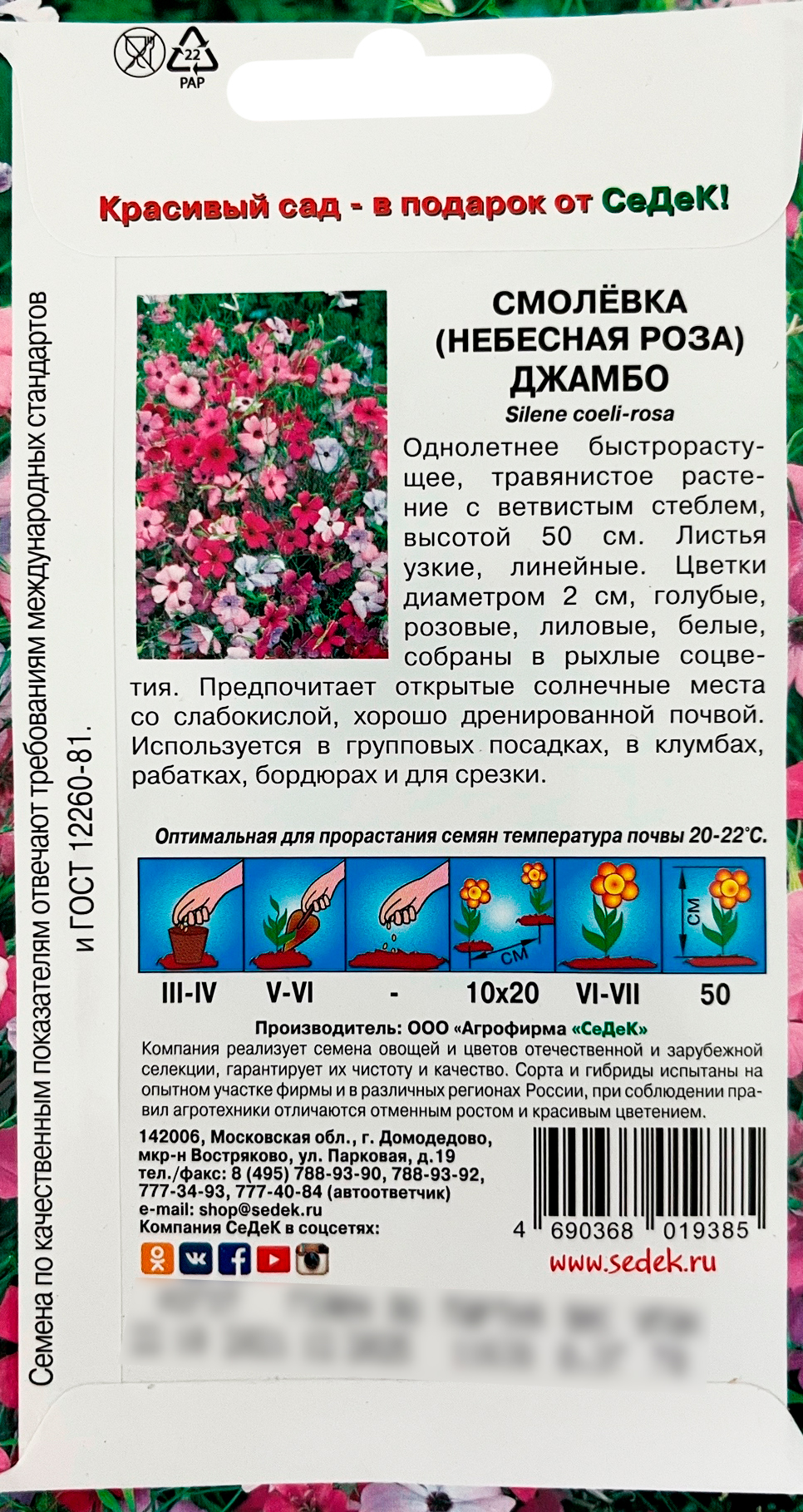 Смолевка Джамбо (небесная роза, смесь цветов) (Евро, 0,3; 11638) семена