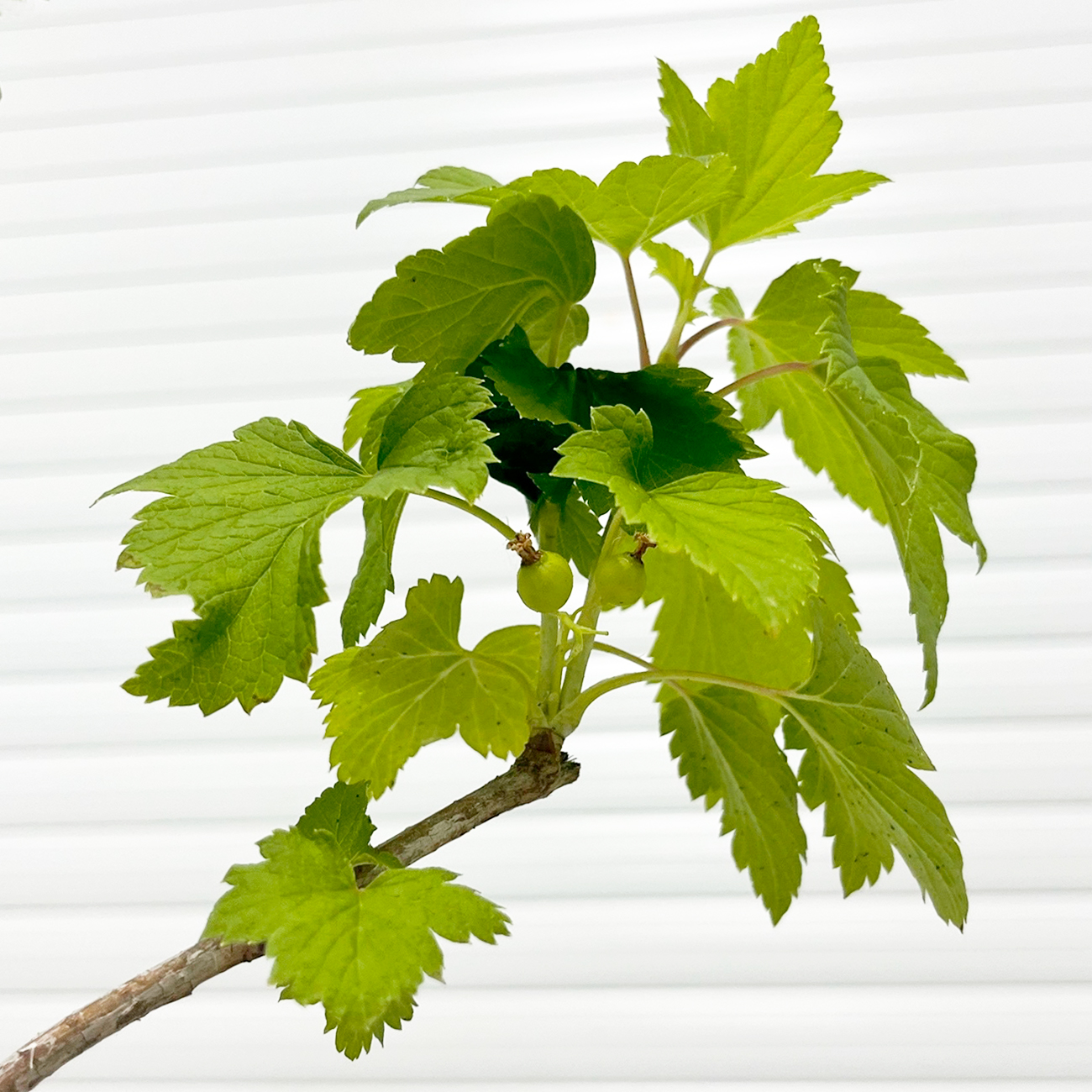 Листья трехлопастные, зеленые, среднего размера. Цветки крупные, кремового цвета. Кисти плотные, с количеством плодов до 10 шт.